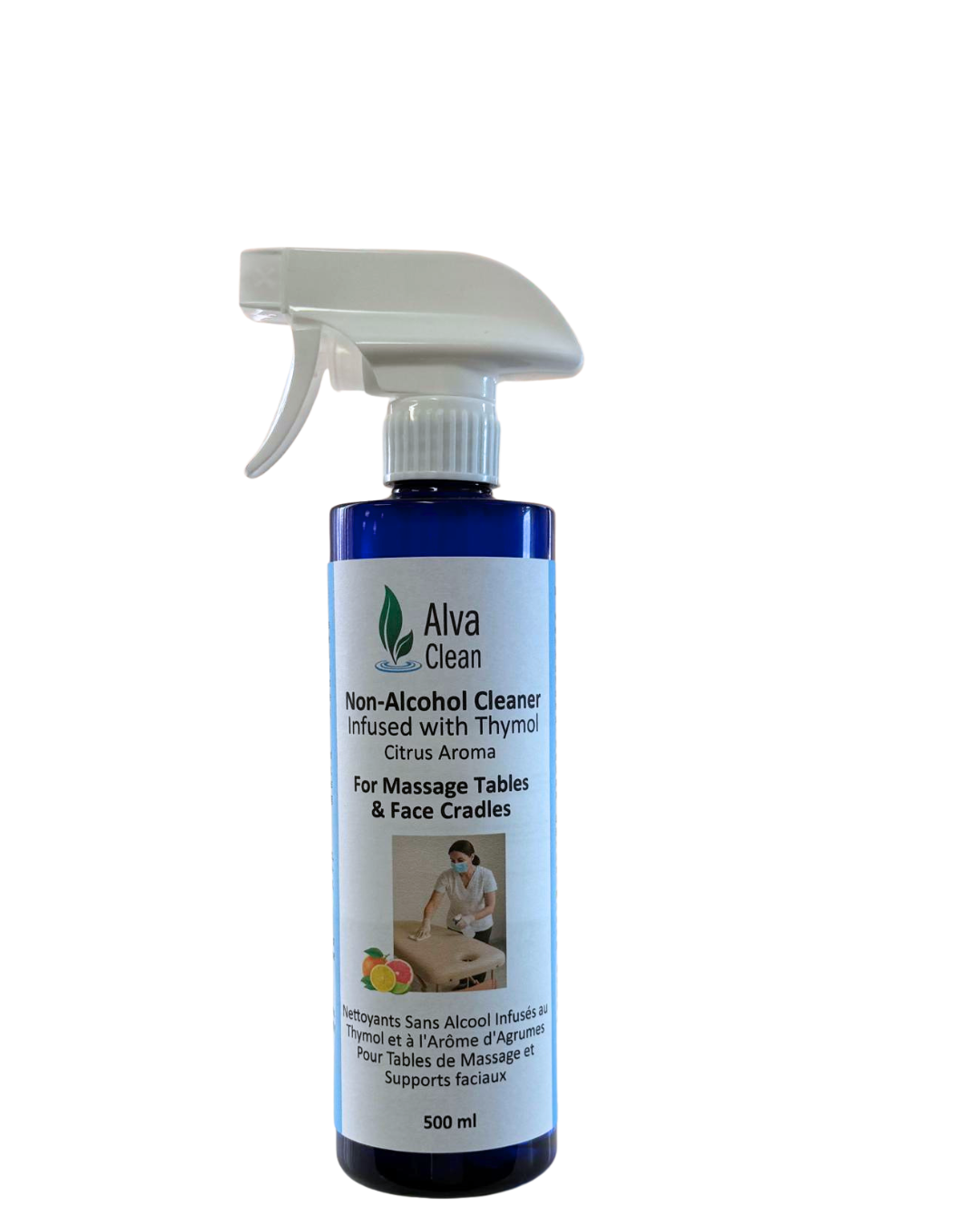 Spray on massage table or cradle after each session. Wipe dry with a clean cloth.