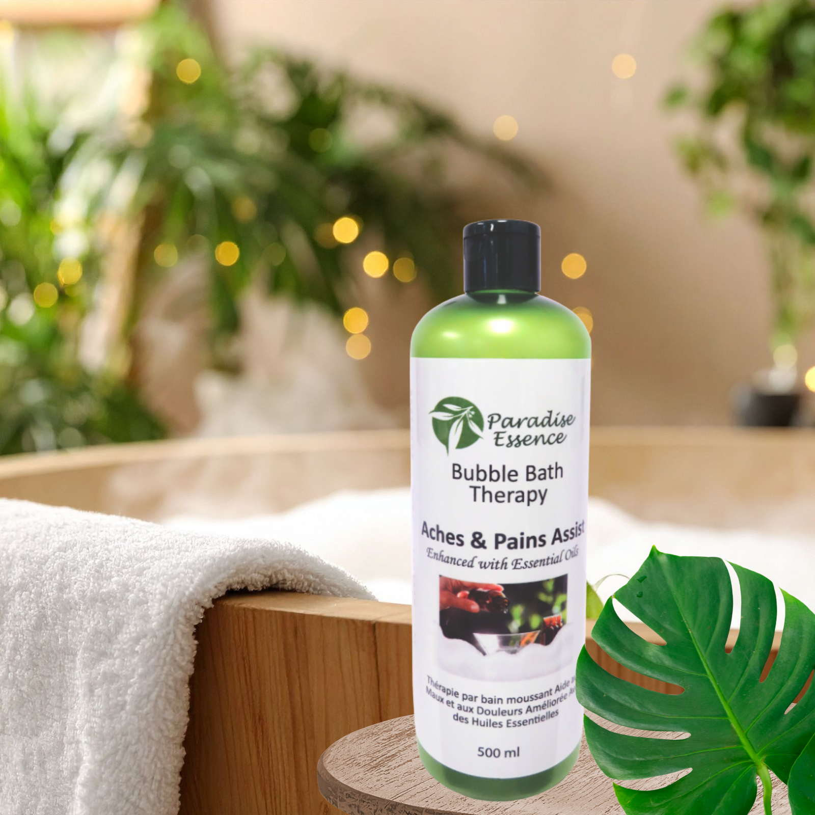 Aches & Pains Assist Bubble Bath contains healing essential oils that help in the relief of body aches and pains. It helps ease symptoms of muscle pain, weakness, spasms, and coordination problems. It also helps ease Joint pain symptoms like swelling, stiffness, and inflammation.